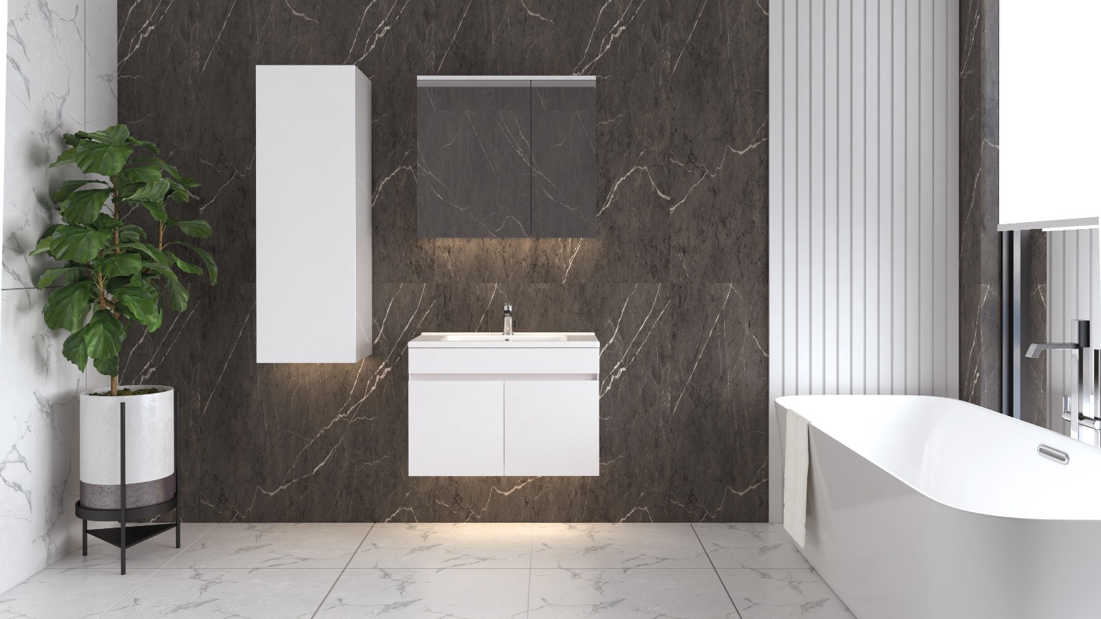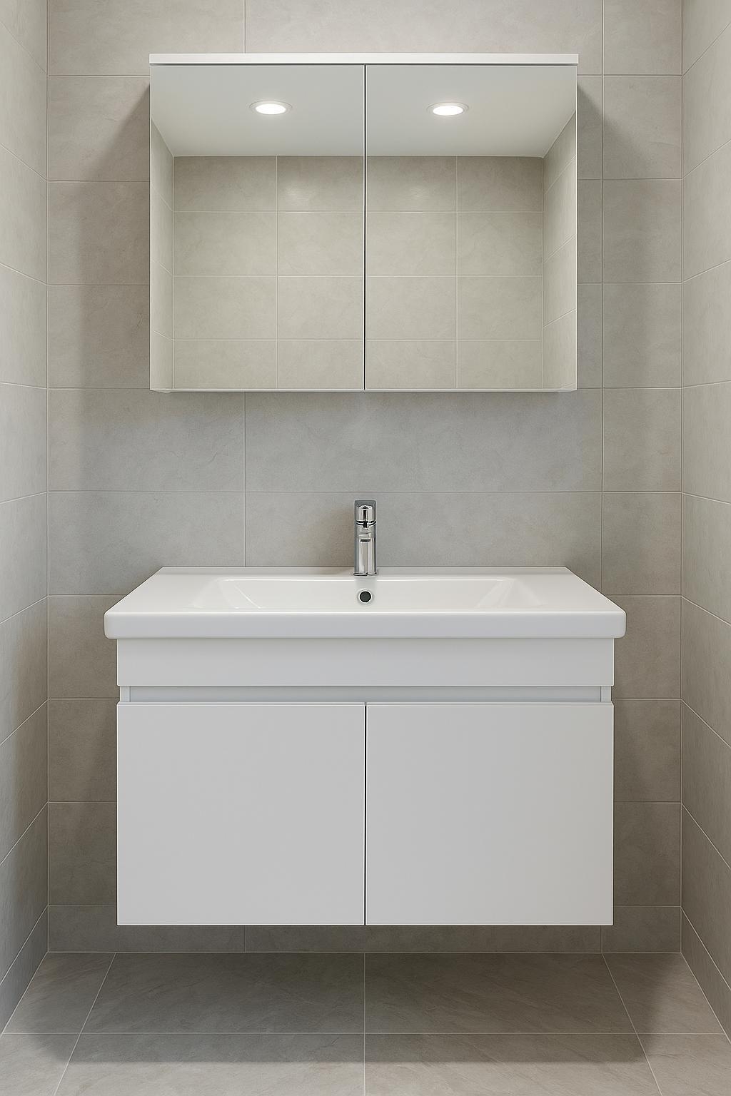 Banyo dolabı, membran kapaklı, Hilton lavabo, etajerli lavabo, Hilton banyo,